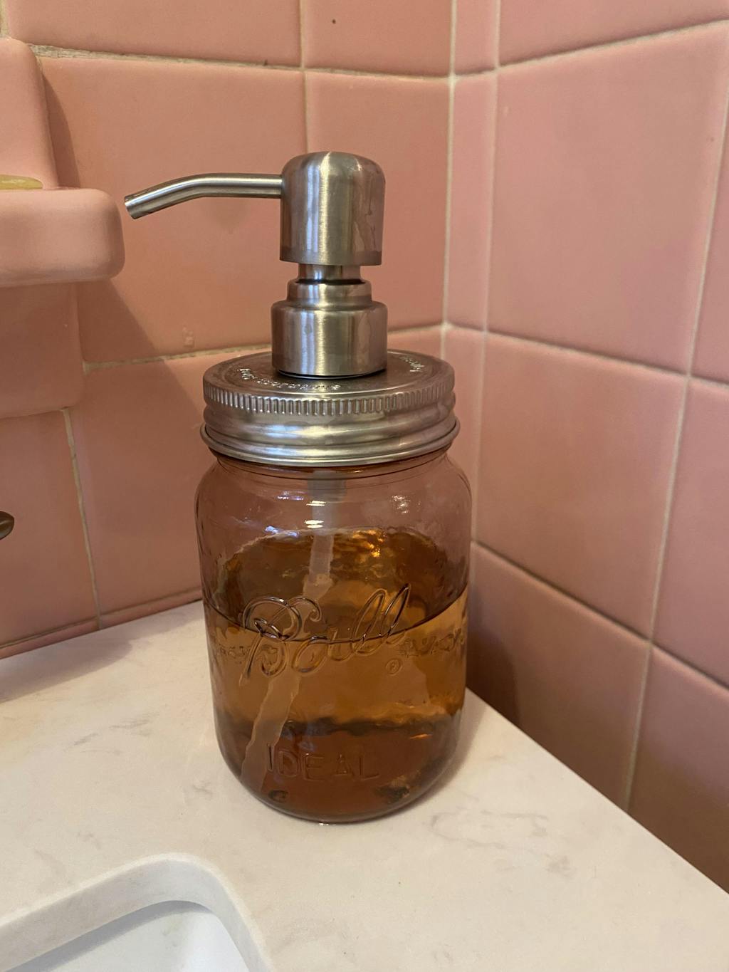 In addition to Mason jars, these soap pumps will fit on any standard 1" threaded bottle, or in any hole that is 27mm or about 1 1/8". Many liquor and beverage bottles can be upcycled as soap pumps! A few that work are Jack Daniels, Crown Royal, and Jägermeister.